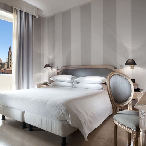 Why Stay Here: If location is the priority and you want river views without ultra luxury pricing, this is the answer. Steps from the Uffizi and Ponte Vecchio with rooms overlooking the Arno. A strong choice for travelers who know Florence and want to prioritize position.