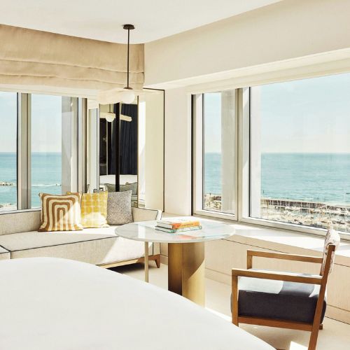 Why Stay Here: The Ritz-Carlton’s beachfront tower hotel next to Frank Gehry’s golden fish sculpture. Two Michelin-starred restaurants (Enoteca by Paco Pérez), rooftop infinity pool with city views and world-class Arts Wellness spa. More sophisticated and family-friendly than W Barcelona. Every room has floor-to-ceiling windows. Direct beach access and 10 minutes by taxi from the Gothic Quarter. Best for travelers who want refined luxury and exceptional dining.