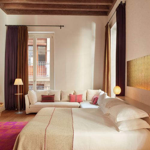 Why Stay Here: On Barcelona’s most vibrant square with Gaudí lampposts and palm trees. Rooftop terrace with 360-degree views. Boutique design with only 18 rooms. Buzzing nightlife right outside but soundproofed rooms. Modern style in historic setting. Great for travelers who want to be in the action.