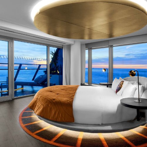 Why Stay Here: We stayed at the W Barcelona for a special occasion and it lived up to every expectation. The sail-shaped glass building dominates the Barcelona skyline and is instantly recognizable from the beach. Our room had floor-to-ceiling windows with views of both the Mediterranean and the city. The 26th-floor Eclipse bar is where you want to be for sunset over the sea. Two infinity pools (WET Deck has a party atmosphere with DJs, SUN Deck is quieter), private beach access and exceptional service throughout. The hotel has a resort feel but you are still in the city. Best for travelers who want Instagram-worthy luxury and do not mind being 20 minutes from the Gothic Quarter. The beachfront location cannot be beat.