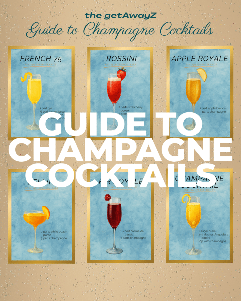 Easy champagne cocktails for festive dinners and New Year’s Eve.