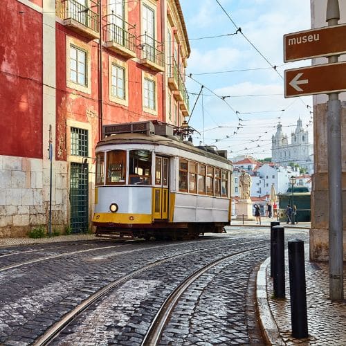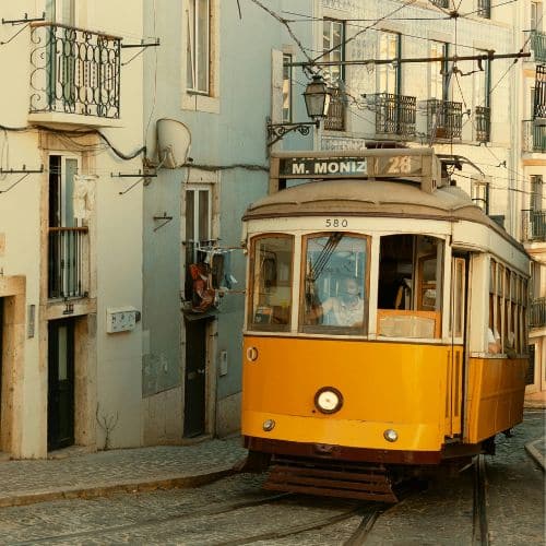 The yellow trams are one of the defining images of Lisbon and the 28E route is the most iconic. It runs from Martim Moniz through the Alfama, up through Graça and across to Campo de Ourique, weaving through streets so narrow it occasionally brushes the buildings.