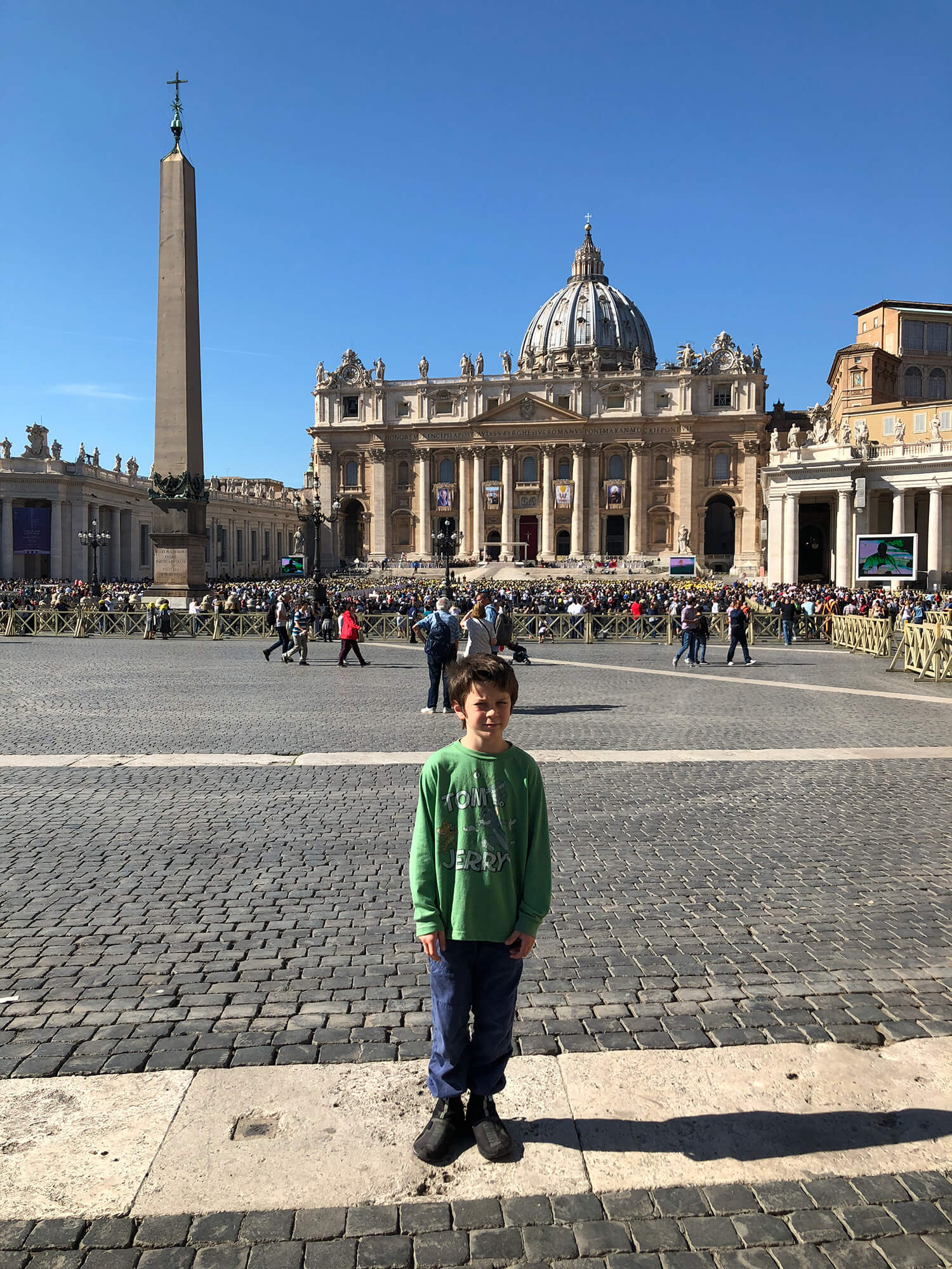 The Vatican Museums are long, crowded and still worth doing. Getting a front of line tour is a must, or you will stand in line for hours. The map room and the tapestries were the things Dylan talked about the most. The Sistine Chapel is always full, but it is still impressive when you finally get to it. St Peter’s Basilica is massive and detailed everywhere you look. The climb to the top is tight and steep. The view is the reward. One visit lined up with a public appearance from the Pope, which was not planned, but Rome is like that. Things just happen.