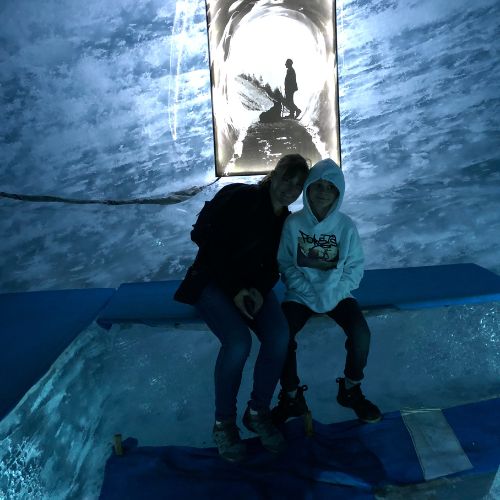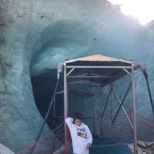 What stood out most was seeing how much the glacier has retreated over the years. Along the walk, there are markers showing where the ice used to be and the difference is striking. The ice cave itself is small but beautiful and seeing it up close made the experience feel much more real than we expected.